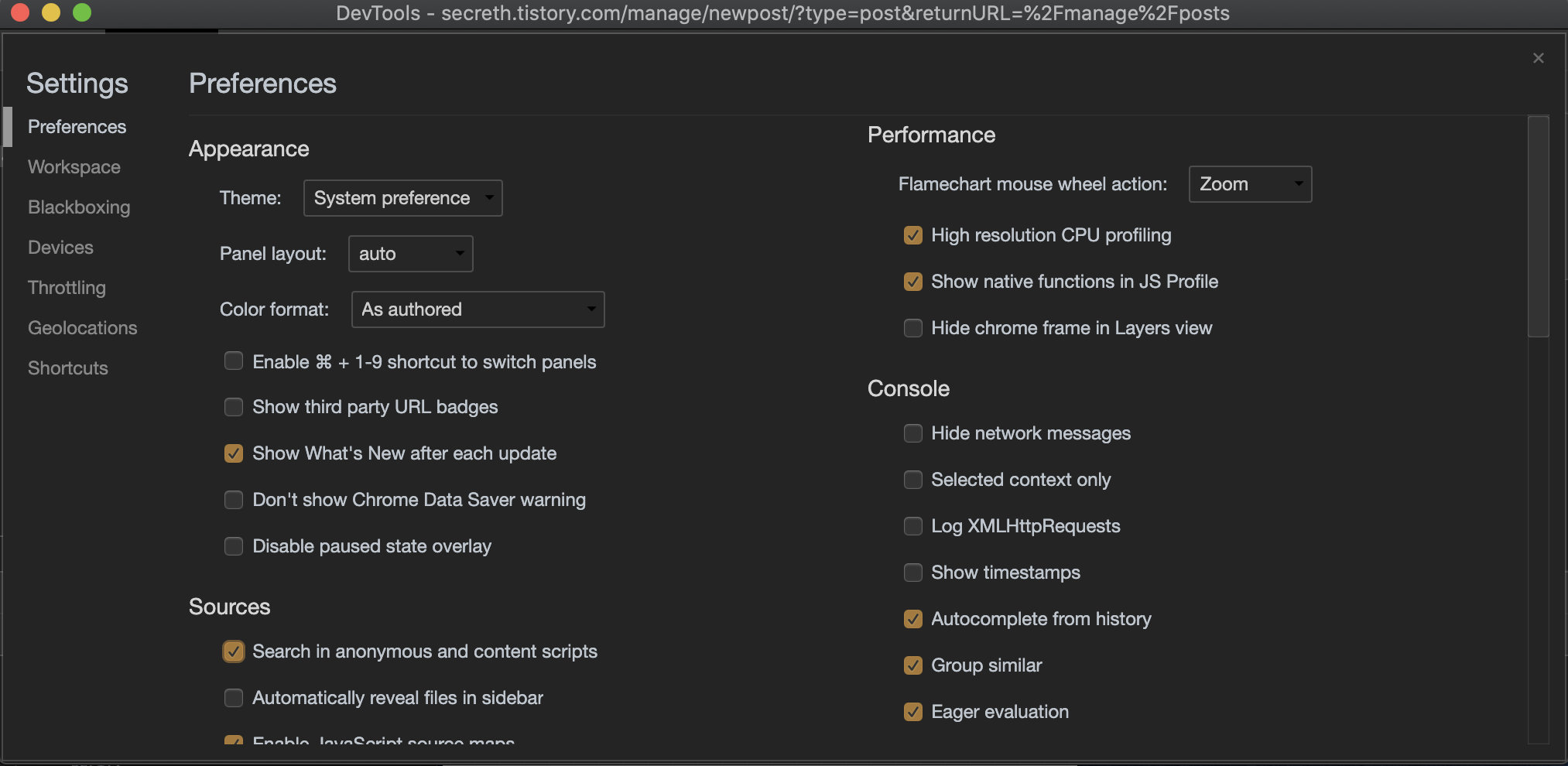 3. Preferences > Sources > Search in anonymous and content scripts ํด๋ฆญํ๋ฉด ์ธํ ์ ๋