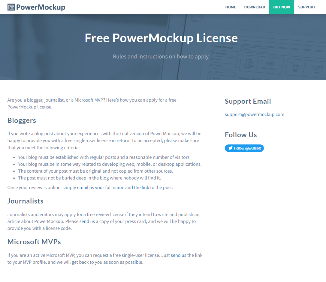 Are you a blogger, journalist, or a Microsoft MVP? Here’s how you can apply for a free PowerMockup license. Bloggers If you write a blog post about your experiences with the trial version of PowerMockup, we will be happy to provide you with a free single